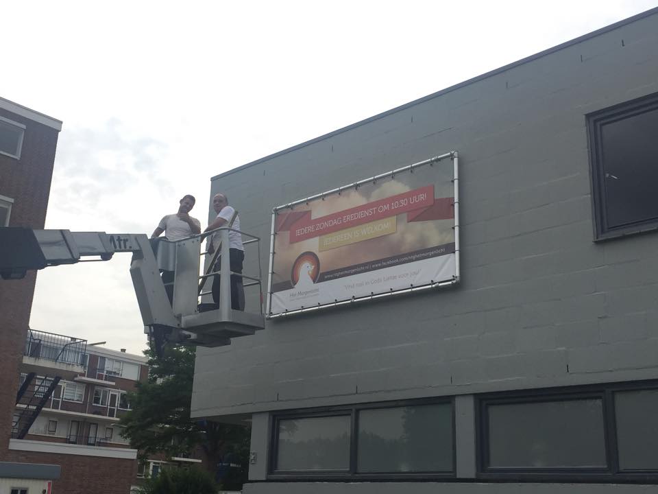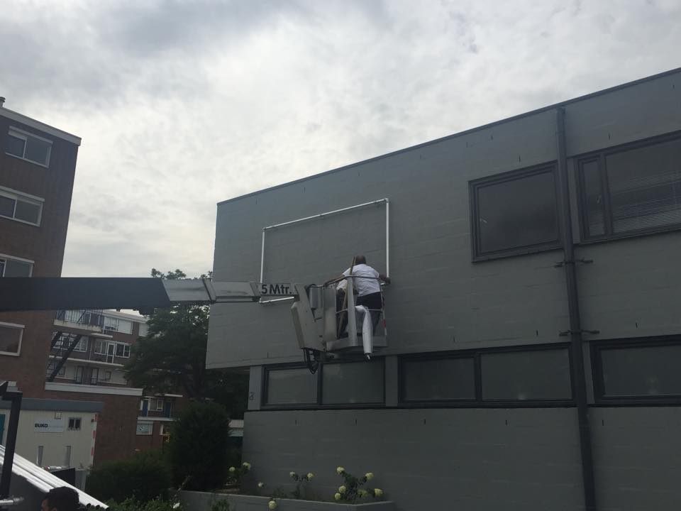 De afgelopen weken is er volop gewerkt aan de buitenkant van ons mooie gebouw; zo zijn alle muren, deuren, kozijnen, trappen en het bordes gerepareerd en geschilderd. Ook de nieuwe banner aan de voorkant van ons gebouw is geplaatst!